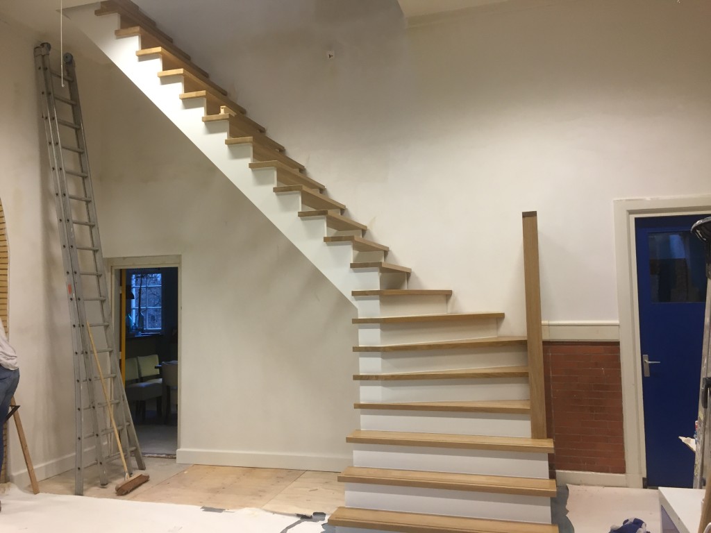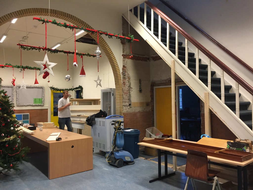 Voor het groeiende aantal leerlingen realiseerden wij een extra lokaal op zolder, inclusief renovatie van het dak en aanpassing van het trappenhuis van één naar twee trappen. Van sloopwerk, isolatie met Actis Triso Laine, hergebruik van bestaande pannen, stucwerk, elektra, vloeren tot het lokaal van binnen: alles werd door ons verzorgd, inclusief de trappen die wij zelf in onze werkplaats hebben gemaakt. Eén contactpersoon, alle werkzaamheden, één resultaat.